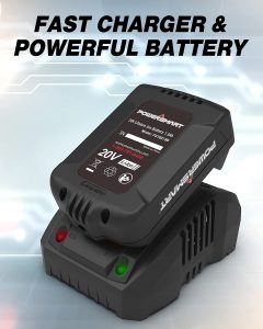 High-power battery: 20V 1.5Ah matching battery provides enough power for the saw. It only takes hours to fully charge the battery. The battery-powered chainsaw works for more than two hours with a fully charged battery.