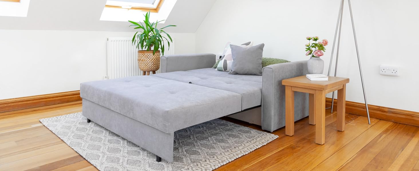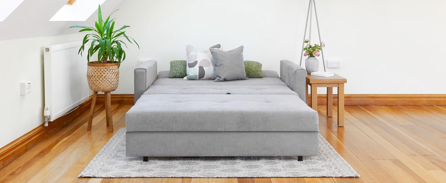 Honeypot Sofabed - Viva 2 Seater Sofabed with Storage - Grey Velvet Fabric Couch with Pull Out Double Sofabed | Setup Included | Made in EU | Built to Last (2 Seater, Plush Grey)